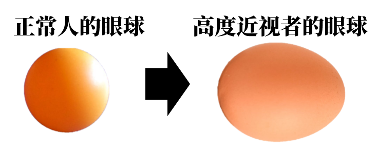 廈門眼科中心專家曾做過一個(gè)比喻:如果,正常人的眼球是圓圓的乒乓球,那么高度近視者的眼球就像扁扁的雞蛋。