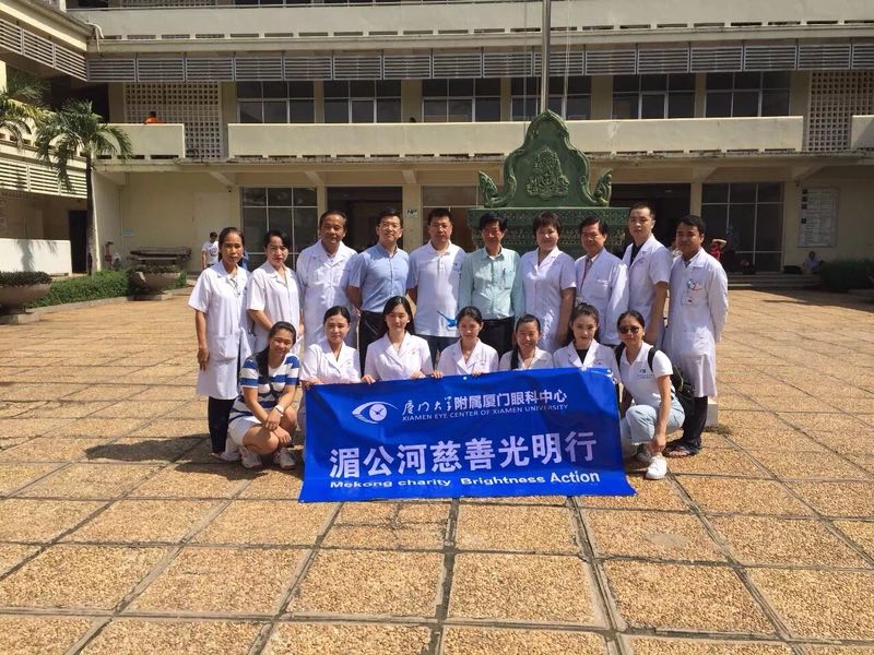 2016年10月21日,科室跟隨柬埔寨光明行先遣醫(yī)療組冒著臺風天轉(zhuǎn)道啟程前往金邊,為當?shù)?00多名貧困白內(nèi)障患者免費施行手術。用充滿愛與責任的人文情懷澆灌中柬“友誼之花”。