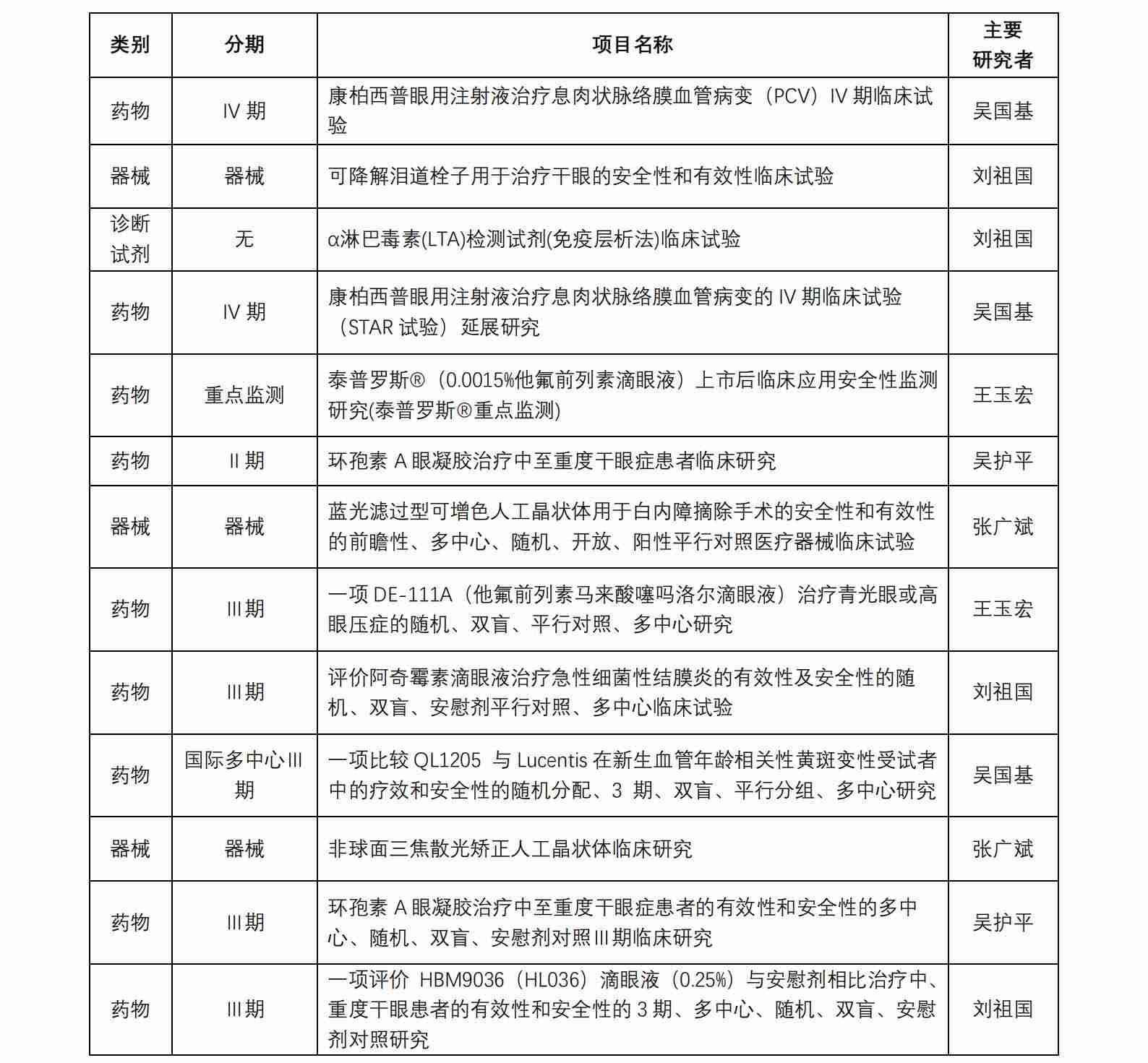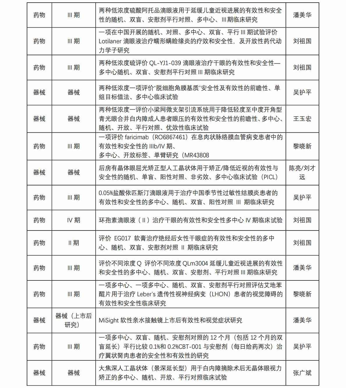 廈門大學附屬廈門眼科中心藥物臨床試驗機構(以下簡稱“機構”)于 2017 年獲得國家藥物臨床試驗(眼科專業(yè))資格。機構可承擔新藥Ⅱ、Ⅲ、Ⅳ期臨床試驗,也是承擔醫(yī)療器械、體外 診斷試劑的重要研究機構。從獲批至今,機構已承接臨床試驗項目共計 45 項(包含藥物臨床試驗項目 31 項,器械臨床試驗項目 13 項 ,體外診斷試劑試驗項目 1 項), 由本中心作為組長單位牽頭的項目共計 8 項。